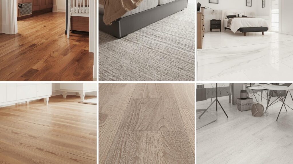 Hardwood floors add warmth and natural beauty. Area rugs add softness and define spaces. Light woods keep rooms bright; dark woods add drama. Proper sealing protects against moisture and wear.