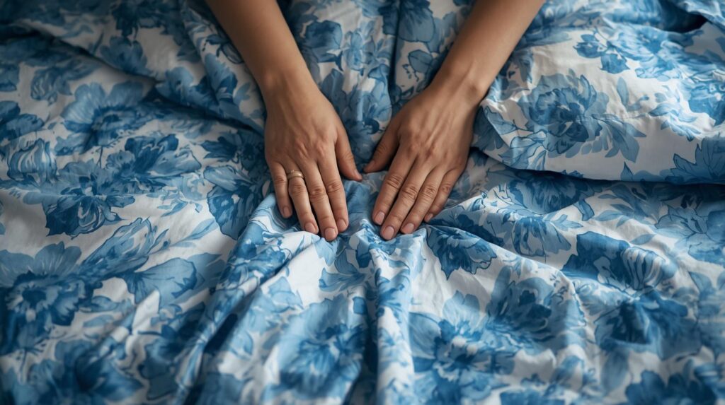 Always check the manufacturer’s care instructions before cleaning your blue floral bedding. Many modern pieces can be machine washed in cold water to protect colors. Use gentle cycles and mild detergents without bleach or optical brighteners, which can alter blue tones over time.