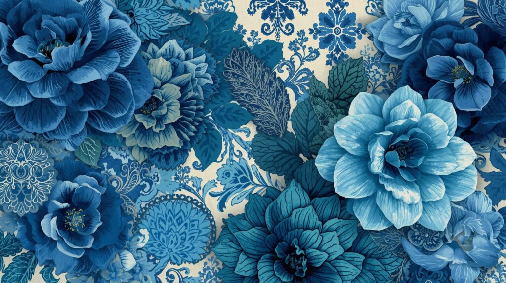 Delicate blue florals feature small, intricate patterns that create subtle texture rather than bold statements. These designs often resemble the tiny flowers found in meadows or the careful renderings of botanical illustrations. Pale blue backgrounds with slightly darker blue flowers, or white backgrounds with delicate blue blooms, produce an effect that feels gentle, romantic, and timeless. This style works beautifully in bedrooms where calm and serenity are the primary goals.