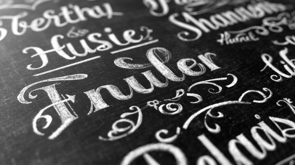 Chalkboard hand lettering has become a recognized skill, with artists specializing in beautiful typography on chalkboard surfaces. Techniques range from simple printed letters to elaborate script, from casual chalk writing to precise lettering achieved with chalk markers and tools.