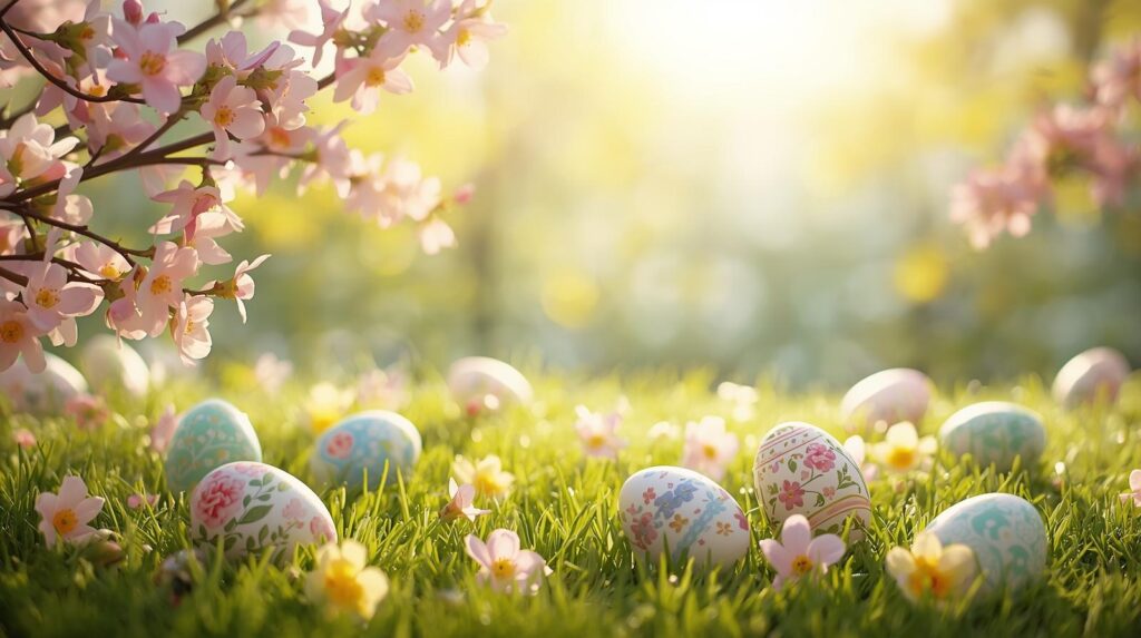 The Easter egg hunt represents the peak of children’s Easter experience. Whether with real decorated eggs hidden in the garden or plastic eggs filled with treats, the hunt creates excitement and joy. The visual of colorful eggs scattered across green grass, children in pastel clothing searching with baskets in hand, captures Easter’s essence.