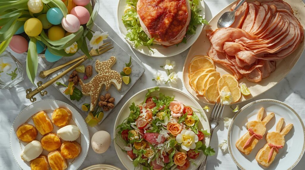 Beyond individual dishes, the overall table setting creates the Easter food aesthetic. Foods arranged on platters with fresh herbs and edible flowers, serving pieces that coordinate with the table’s color scheme, and careful attention to presentation all contribute to the visual feast.