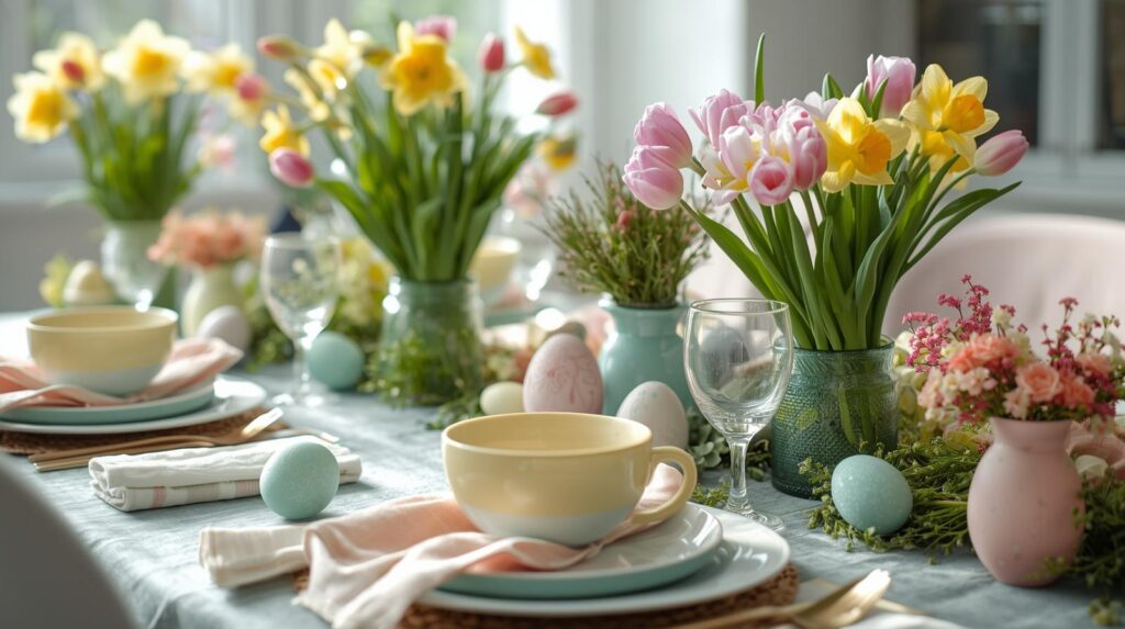 The Easter table serves as centerpiece for family gatherings, deserving particular attention in any Easter aesthetic.