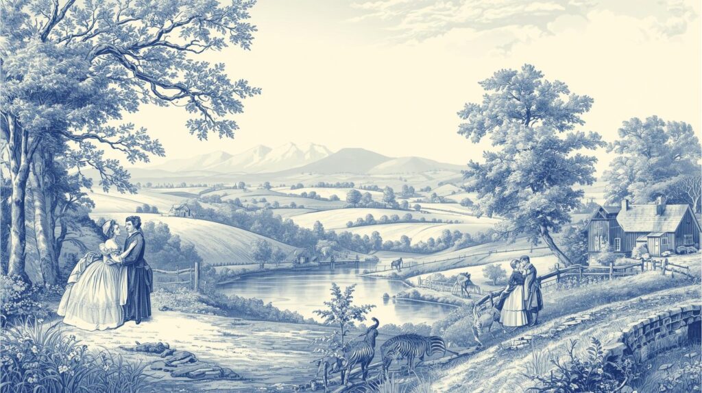 Contemporary designers have reimagined toile for today’s homes, introducing unexpected colorways and updated scenes. Gray toile on soft white feels fresh and modern while maintaining traditional appeal. Black toile on cream adds graphic drama. Some modern toiles even update the scenes themselves, featuring contemporary rural life or whimsical interpretations of farm animals and country pursuits. These fresh takes allow you to enjoy toile’s narrative quality without the formality of traditional versions.