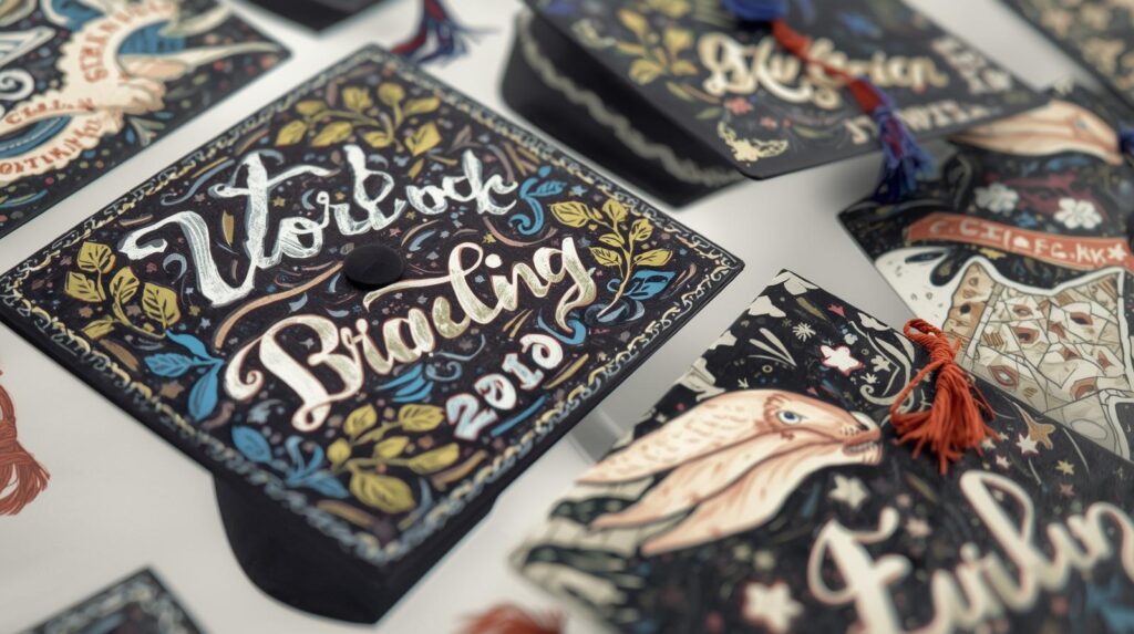 But don’t stop there. Your cap should reflect you, not just replicate what’s popular. Consider what symbols, colors, and imagery are meaningful to you. Think about your academic journey, what you’ve learned, who helped you along the way, where you’re going next. These personal elements will make your cap uniquely yours.