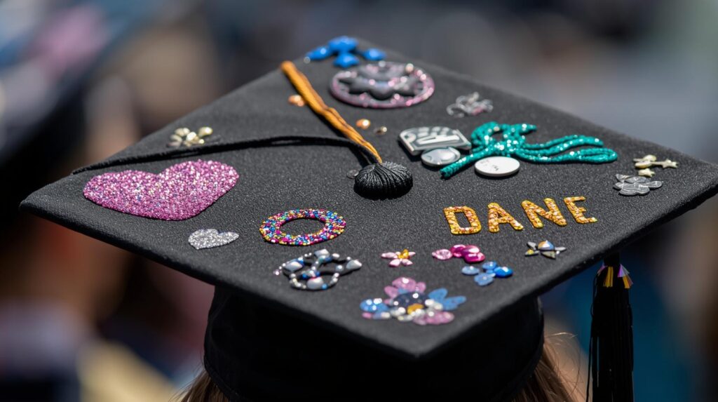 These tribute caps often prove the most emotional at graduation, bringing tears to family members who see their support acknowledged so publicly. Consider incorporating family names, significant dates, or symbols that represent your loved ones.