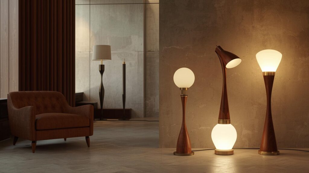 Mid century floor lamps are sculptures as much as lighting devices. They command attention even when not illuminated, contributing to the room’s aesthetic through form alone. Designers thought about how lamps would be seen from all angles, how they would interact with surrounding space, how they would create not just light but shadow and atmosphere.