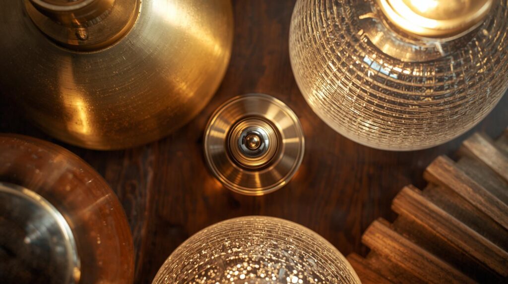 Glass appears in countless mid century fixtures, from simple globes to elaborate hand-blown creations. Opaline glass, with its milky translucence, softens light beautifully, creating warm, even illumination. Clear glass allows the bulb to become part of the design, celebrating the technology of light. Colored glass, particularly amber, green, and blue, adds warmth and period authenticity. Textured glass creates visual interest even when unlit.