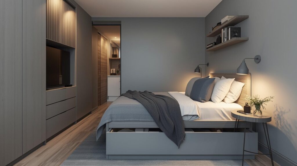 The space under your bed is prime real estate. Bed risers create more clearance for storage bins. Drawers built into the bed frame provide organized access. Vacuum-sealed bags store off-season clothing and bedding compactly. Choose a bed skirt that conceals storage while maintaining a polished look.